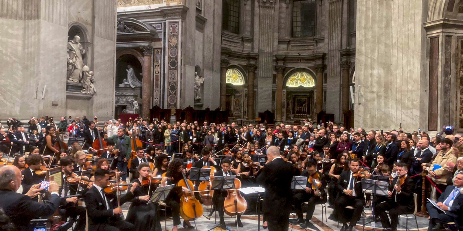 Nascida e formada por jovens da periferia de Recife, a Orquestra Criança Cidadã se apresentou nesta sexta-feira (3) no Vaticano, durante a realização do Concerto para a Paz. Com uma missão pacifista, a orquestra, formada por 25 jovens entre 14 e 21 anos de idade se apresentou ao lado de músicos da Itália e de regiões que estão em conflito, como Rússia e Ucrânia. O objetivo do concerto é sensibilizar o mundo pelo fim das guerras.