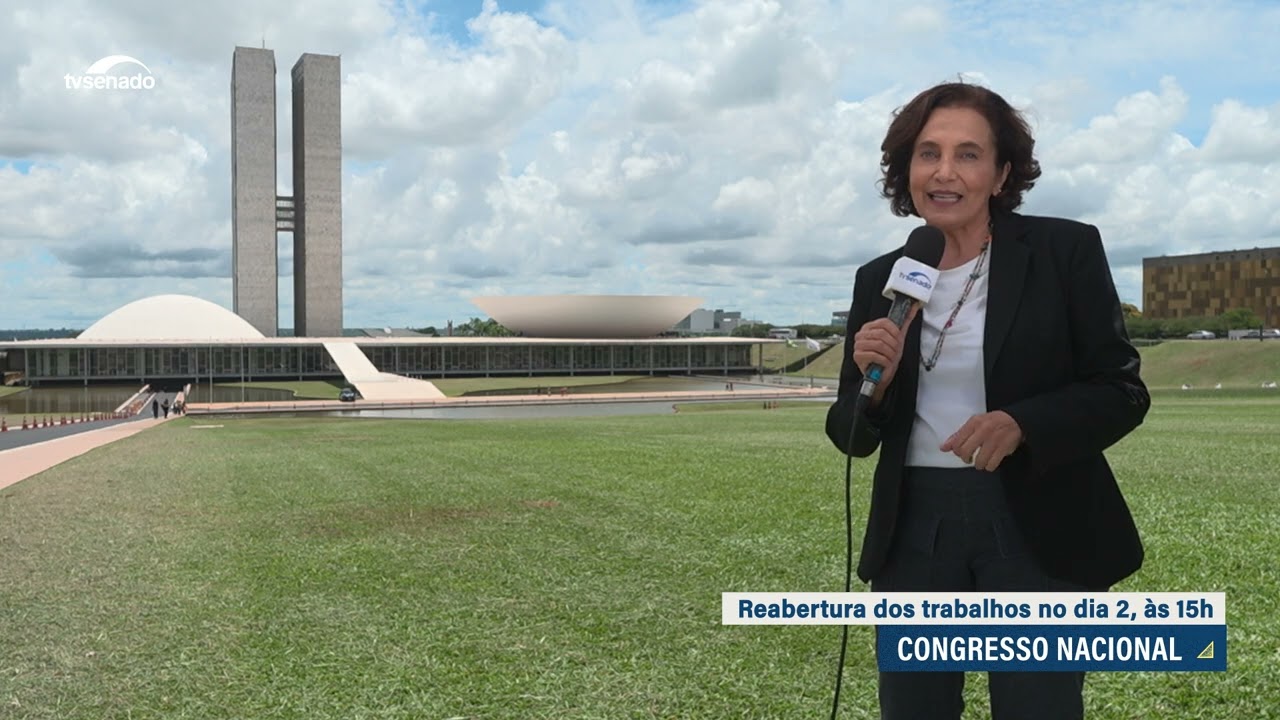 O Congresso Nacional marcou para o dia 2 de fevereiro, às 15h, a sessão solene de reabertura dos trabalhos legislativos. A cerimônia inclui a tradicional revista às tropas, tiros de canhão e a subida da rampa pelos presidentes da Câmara e do Senado. No Plenário da Câmara, o presidente do Senado declara oficialmente abertos os trabalhos. Na sessão, os Poderes sinalizam as prioridades para o novo ano legislativo, com destaque para a mensagem do presidente da República ao Parlamento.