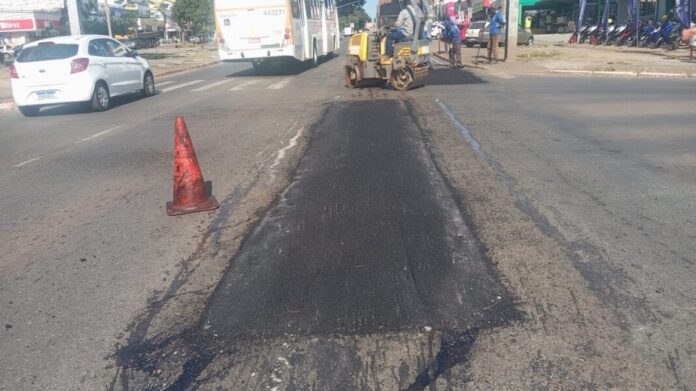 O trabalho contempla frentes permanentes de tapa-buracos e recuperação asfáltica, priorizando vias de maior circulação, corredores principais, ruas secundárias, conjuntos residenciais e atendimentos emergenciais identificados pela população.