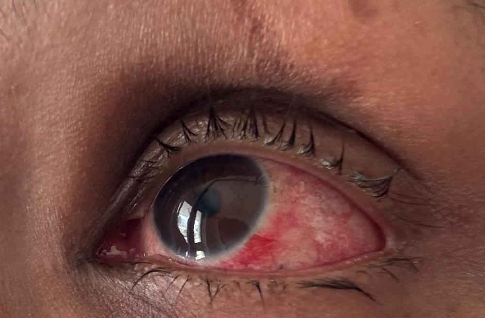 “Eu achei que fosse uma conjuntivite alérgica, que normalmente melhora rápido com o uso de colírio. Mas, dessa vez, a situação piorou. O olho ficou muito vermelho e comecei a sentir como se houvesse uma película por cima, uma sensação estranha, como se algo estivesse deslocado. A visão também ficou turva”, conta.