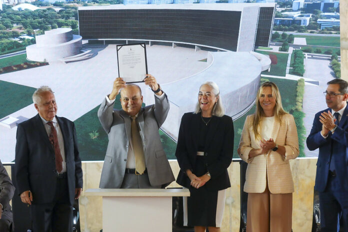 O governador Ibaneis Rocha assinou, nesta terça-feira (3), a ordem de serviço que autoriza a retomada e a conclusão das obras da nova sede do Tribunal Regional Federal da 1ª Região (TRF1), em Brasília. A iniciativa destrava um projeto que estava paralisado havia quase duas décadas.