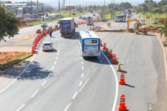 A alteração tem o objetivo de dar andamento às obras no Viaduto do Riacho Fundo, e será feita pelo canteiro central para dar início à fase de escavação da passagem subterrânea, cujo investimento total é de R$ 22,3 milhões. A expectativa é que o trânsito não seja afetado, já que o desvio continuará com três faixas de rolamento e, por enquanto, não afetará quem segue no sentido Samambaia.