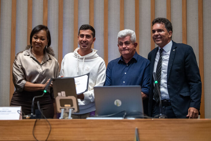 A sessão ordinária da Câmara Legislativa desta terça-feira (14) foi interrompida para virar palco de homenagem ao brasileiro mais laureado em Campeonatos Mundiais de Atletismo: o brasiliense Caio Bonfim. O atleta – que voltou para casa, do Mundial do Japão, em setembro, com uma medalha de ouro e outra de prata – esteve no plenário da Casa acompanhado de seu pai e treinador, João Sena, e recebeu moção de louvor de iniciativa da deputada Doutora Jane (Republicanos).