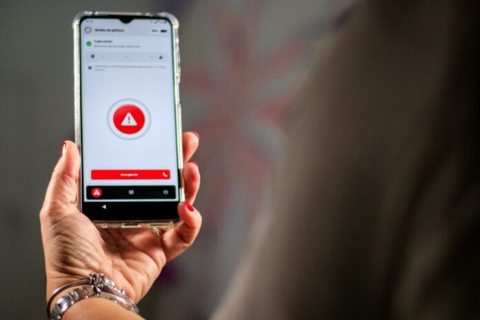 Inicialmente, o Viva Flor funcionava apenas por meio de um aplicativo no celular. A partir de 2021, passou a contar também com um dispositivo próprio semelhante a um telefone móvel | Divulgação/SSP-DF