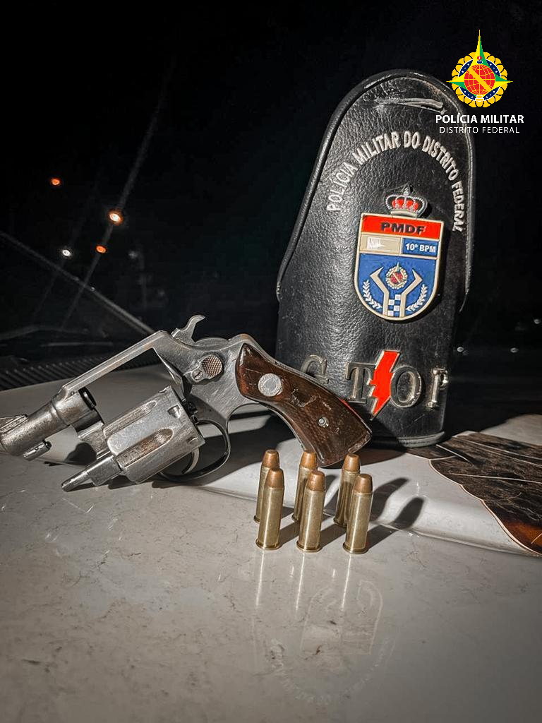 A Polícia Militar prendeu uma arma de fogo calibre .38, com seis munições intactas, na QNP 27, na Ceilândia. Um homem estava em uma moto e identificou os policias que estavam em patrulhamento, momento que ele dispensou a arma de fogo e fugiu. Os policiais acharam a arma dispensada, mas não conseguiram deter o homem. A arma foi levada para à 15ª DP.