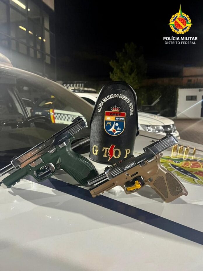 Duas armas calibre .9mm e quatorze cartuchos de munição intactos foram apreendidos.