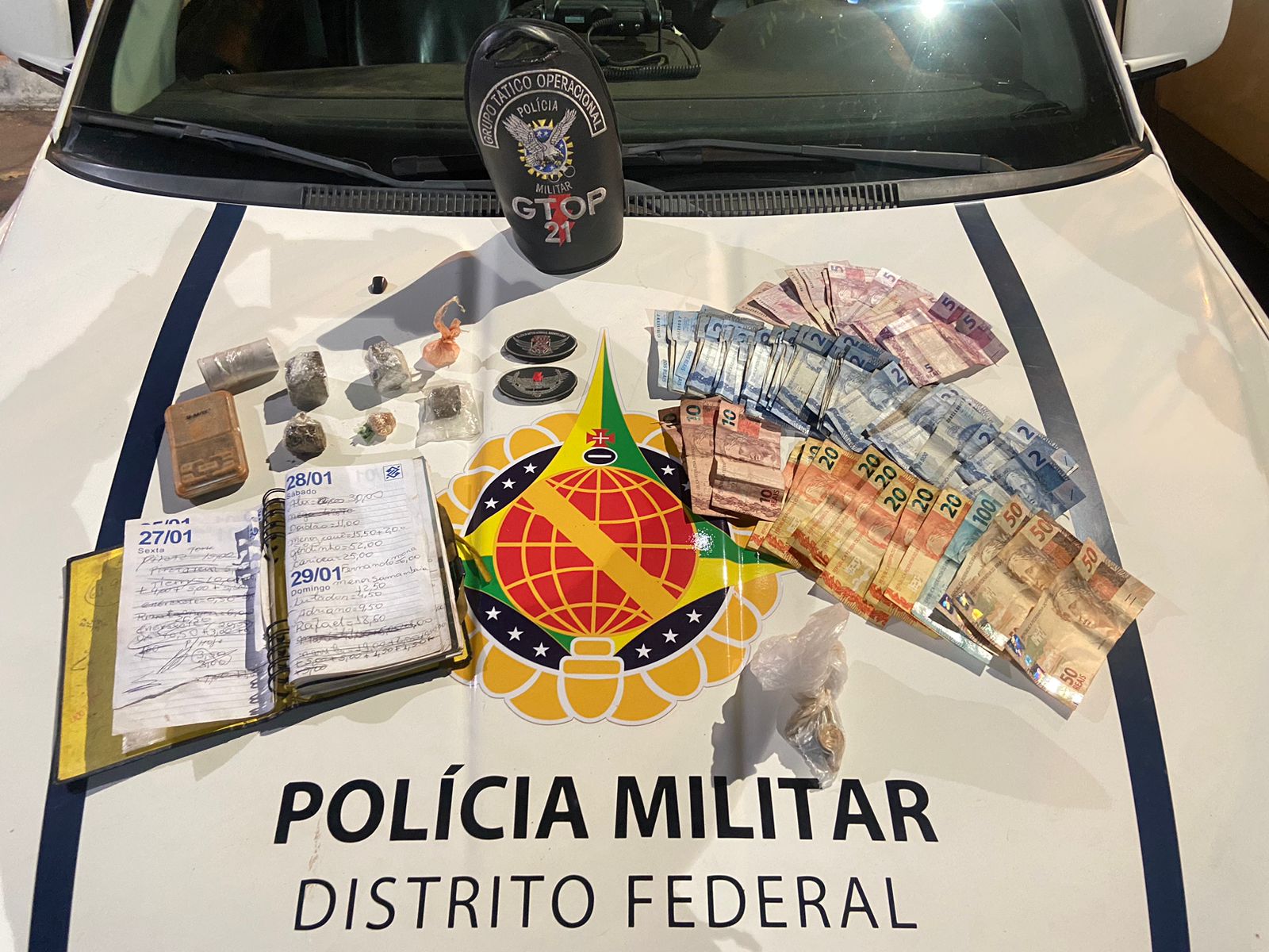 Os policiais do Gtop 21 estavam patrulhando o SCS quando flagraram o momento em que a mulher entregou uma porção de entorpecente (crack) para um usuário. Realizaram, então, a abordagem e encontraram com a mulher mais de R$ 600 em dinheiro trocado, porções de maconha, cocaína, crack, uma balança de precisão, um caderno com anotações e material para embalar e comercializar entorpecentes.