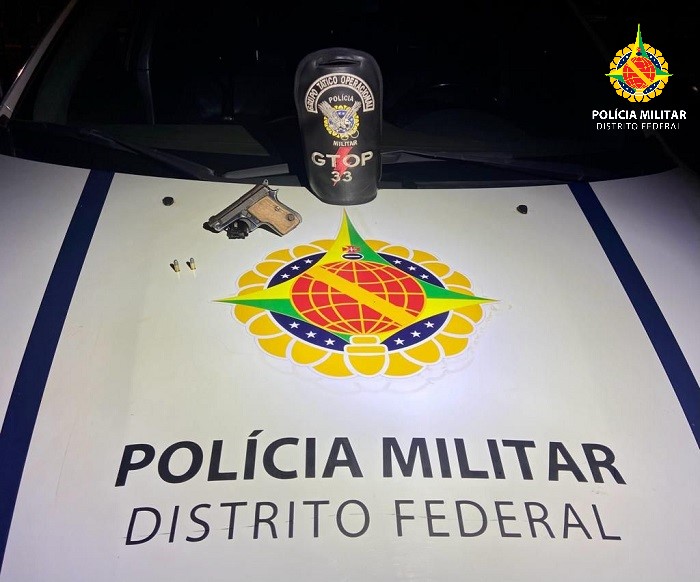 Dois homens foram presos após uma arma de fogo ser encontrada no interior do veículo que estavam na noite desta terça-feira (6), em Sobradinho.