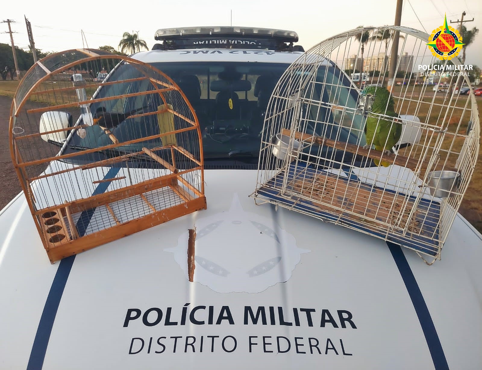 Policiais militares do Grupo Tático Ambiental (GTA) apreenderam duas aves criadas irregularmente em Samambaia na tarde desta quarta-feira (28). A PMDF recebeu a denúncia do crime ambiental pelo 190 e foi até a residência indicada.
