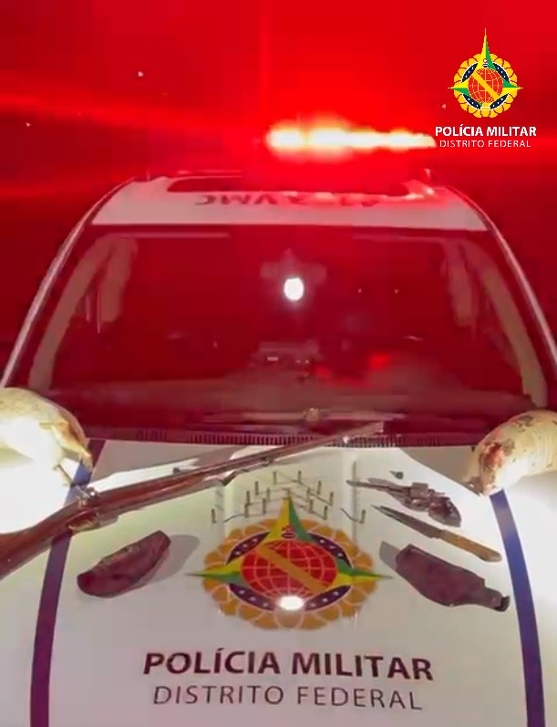 Policiais militares do 28º Batalhão apreenderam duas armas de fogo enquanto atendiam uma ocorrência de violência doméstica no Riacho Fundo II. A equipe da PMDF foi acionada para averiguar um chamado de Lei Maria da Penha na QN 27 do Riacho Fundo II. Os policiais encontraram, além do armamento, caça ilegal.