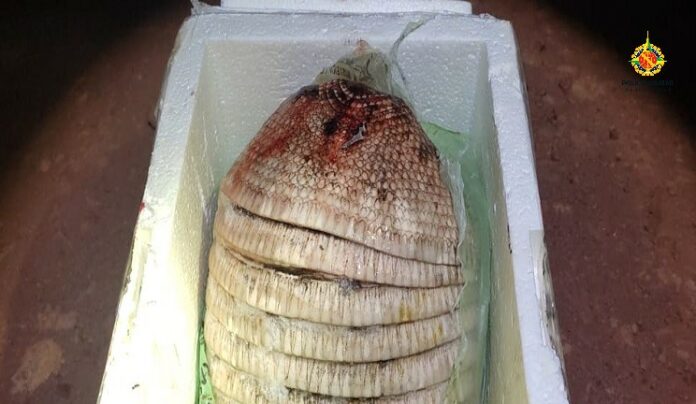 A equipe avistou o veículo em atitude suspeita e, após abordagem veicular, encontraram um Tatupeba morto.