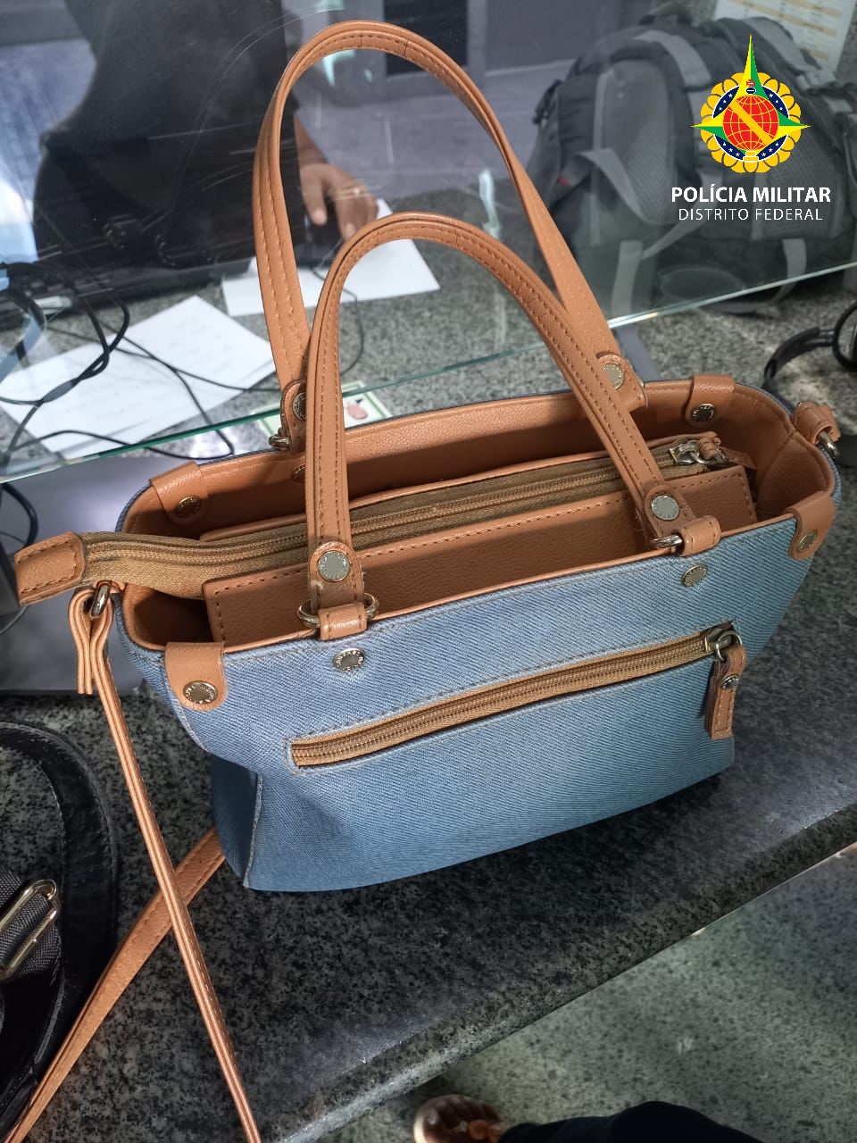 O suspeito foi acompanhado e encontrado atrás de uma pilastra. A vítima chegou no local da abordagem e afirmou que teve a bolsa roubada após ser ameaçada com uma faca. O suspeito informou onde deixou os pertences da vítima e foi conduzido para a 5ª DP onde foi autuado em flagrante.