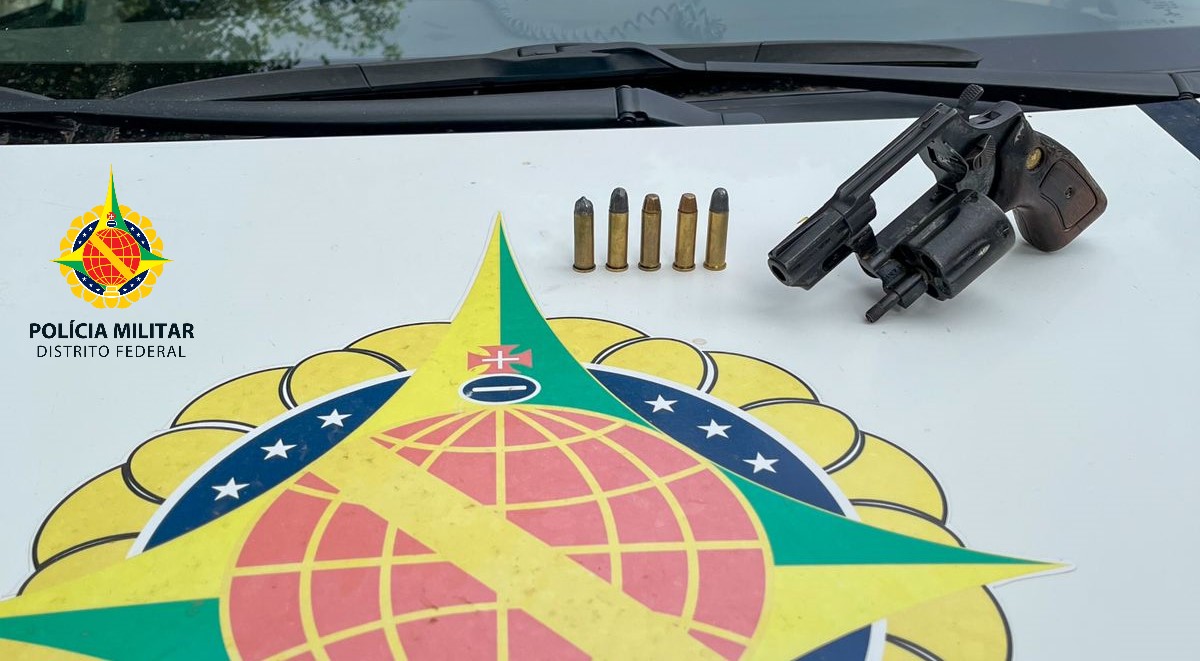 Durante a abordagem os policiais encontraram, no interior do veículo, um revólver calibre 38 com cinco munições intactas.