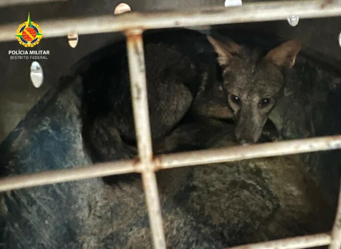 A PMDF resgatou uma raposa em uma casa na quadra 19 do Itapoã, às 08h30 desta segunda-feira (5).