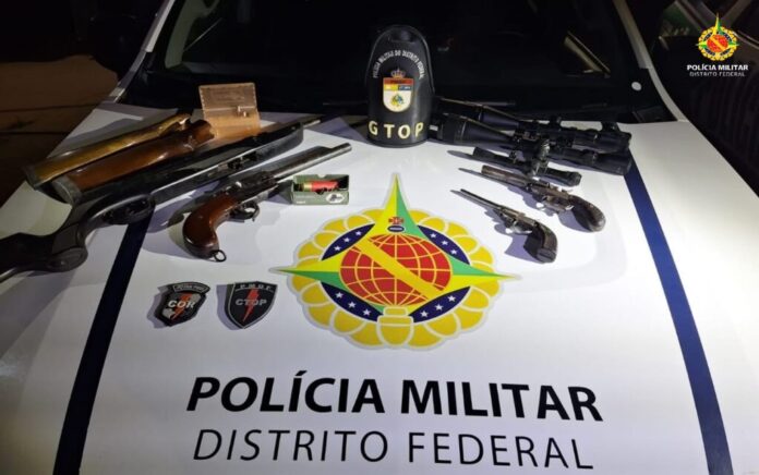 Na noite desta quarta-feira (11), por volta das 19h30, a Polícia Militar do Distrito Federal, por meio do GTOP 47, realizou a apreensão de quatro armas de fogo durante ação conjunta com a Polícia Militar do Estado de Goiás, no município de Santo Antônio do Descoberto.
