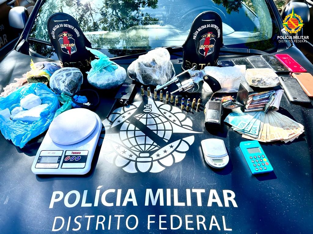 Dois homens foram detidos pelos policiais militares da Rotam em posse de arma de fogo, munições e drogas no Recanto das Emas, às 11h desta sexta-feira (9). Os policiais foram atender a uma demanda de ameaça na Quadra 116 e descobriram que a casa do suspeito era usada como ponto de venda de drogas.