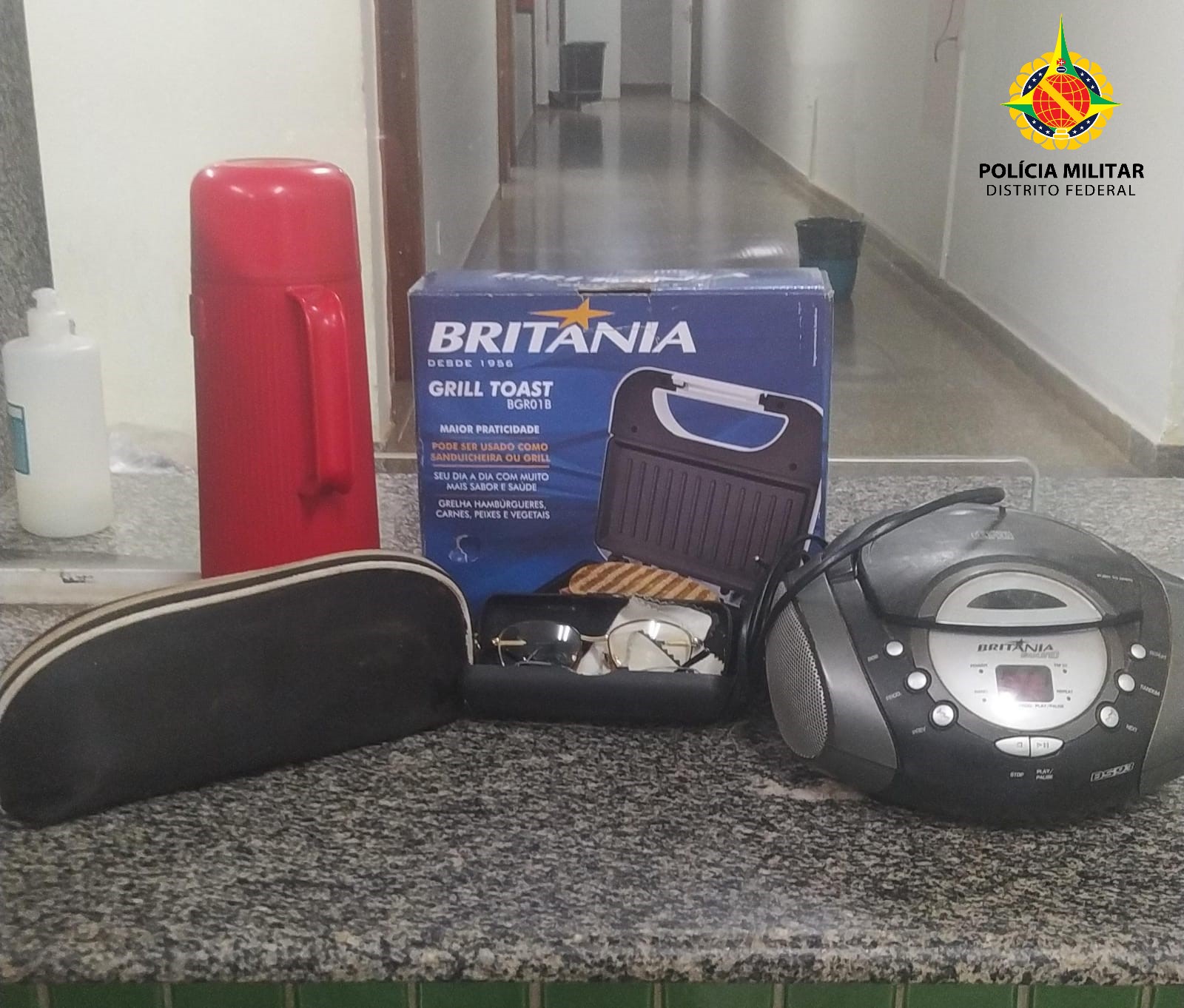 Já na parte da tarde, a PMDF foi chamada para uma ocorrência de furto em uma casa, e no local, a proprietária forneceu as características do homem que acabara de furtar sua residência. Na quadra ao lado, para surpresa de todos, com vários bens domésticos, estava o mesmo homem que de manhã havia assinado um TCO por porte e uso de drogas, sendo preso