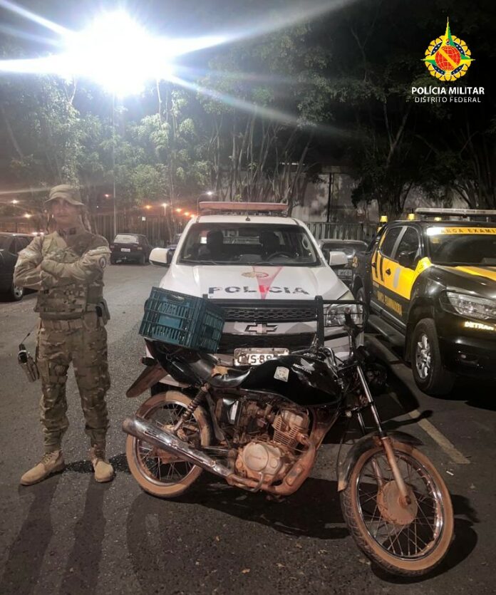 Durante patrulhamento rural, a equipe se deparou com um indivíduo pilotando uma motocicleta sem placa, após abordagem verificou-se que todos os sinais identificadores do veículo haviam sido suprimidos.