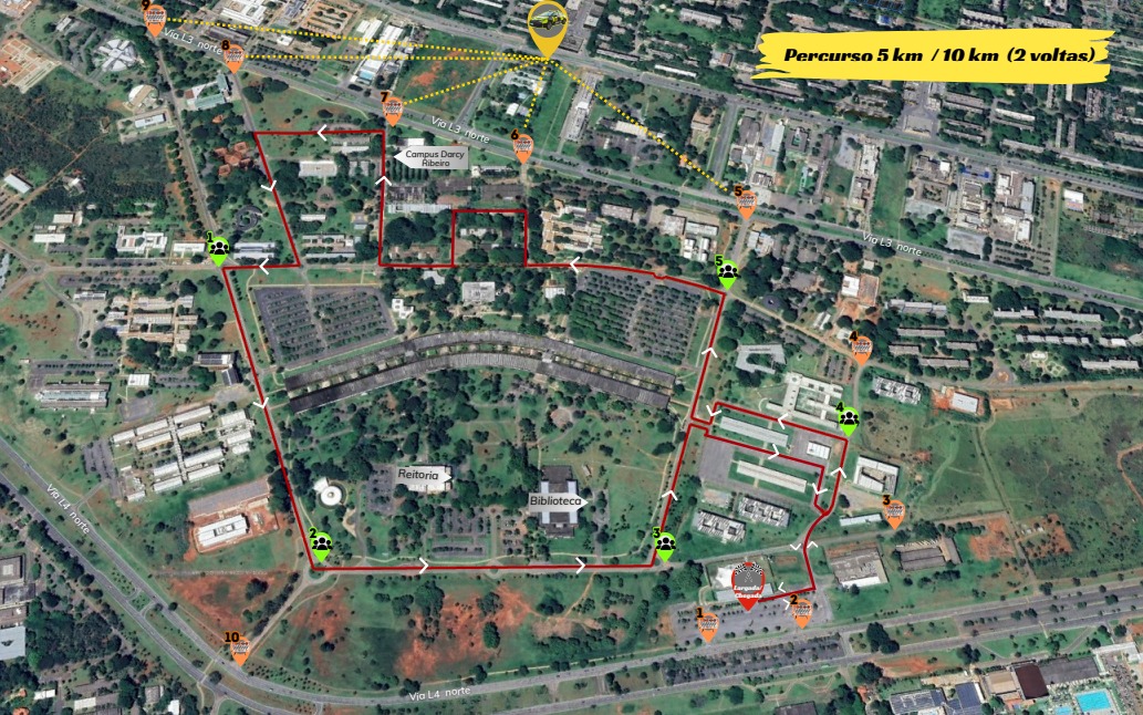 A largada e a chegada acontecerão no Centro Comunitário Athos Bulcão, na Tenda da UnB. A previsão é que os participantes iniciem a corrida às 8h. As equipes do Detran-DF estarão presentes nas proximidades do evento, controlando o tráfego e auxiliando na travessia de pedestres.