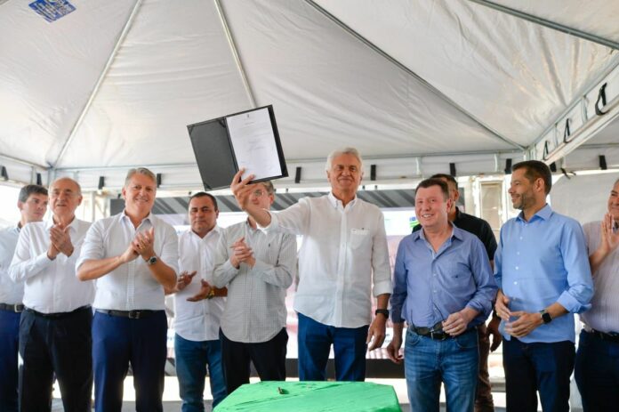 A cidade de Águas Lindas será a primeira a ganhar o Mercadão Goiano. O governador Ronaldo Caiado assinou, nesta terça-feira (06/06), a ordem de serviço para a instalação do centro comercial. Com investimentos de R$ 37,9 milhões do Fundo de Proteção Social do Estado de Goiás (Protege), a obra deve ser finalizada em 15 meses. O objetivo é fomentar a economia da região do Entorno do Distrito Federal, além de gerar mais emprego e renda para a população desses municípios.