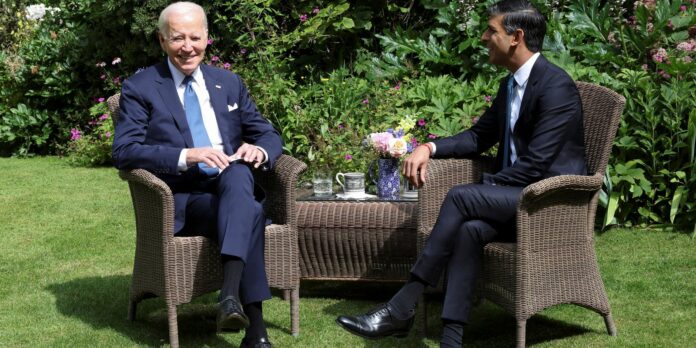 “Ótimo para nós continuarmos nossas conversas”, disse Sunak a Biden enquanto eles se sentavam no jardim de Downing Street.