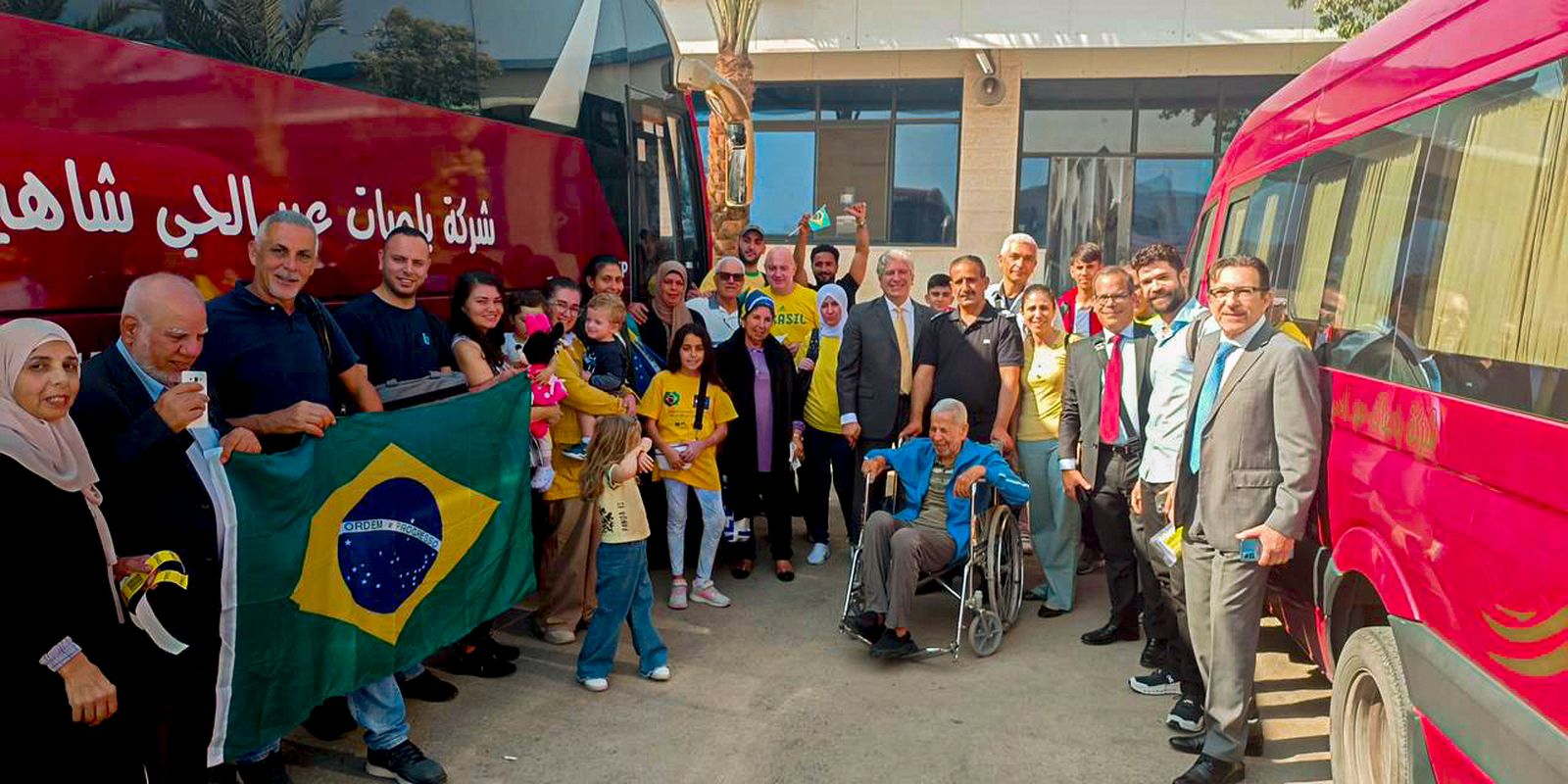 Eles foram conduzidos em vans e ônibus de 11 cidades diferentes da Cisjordânia até a cidade de Jericó. De lá, todos cruzaram a fronteira em um ônibus fretado pelo governo brasileiro até Amã, a capital da Jordânia, em um deslocamento de pouco mais de uma hora.