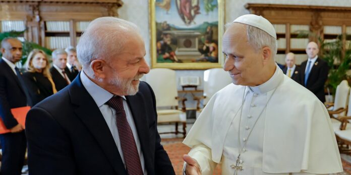 O presidente Luiz Inácio Lula da Silva se reuniu nesta segunda-feira (13), no Vaticano, com o papa Leão XIV. Em seu perfil na rede social X, Lula relatou ter conversado com o pontífice sobre “religião, fé, o Brasil e os imensos desafios que temos que enfrentar no mundo”.